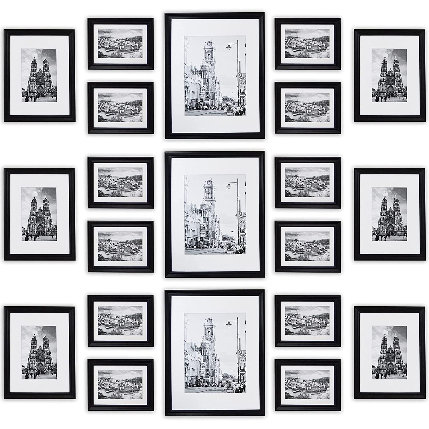 • Multi-size frame set: This 21-pack picture frame collection includes 3 black 11x14 frames, 6 black 8x10 frames, and 12 black 5x7 frames. Create a cohesive gallery wall or display them individually throughout your home.
