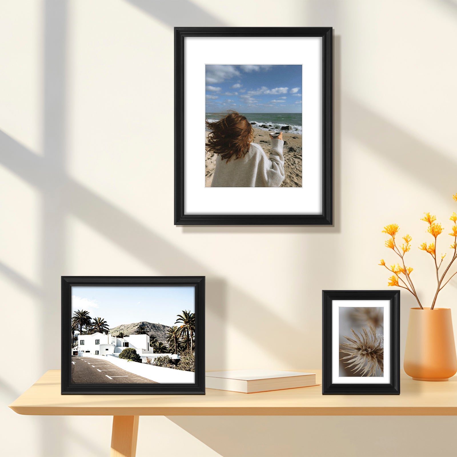 • Solid wood construction: Crafted from durable solid wood that resists warping, these frames are built to last. Tempered glass and an MDF backboard protect your photos and artwork, preserving your memories for years.