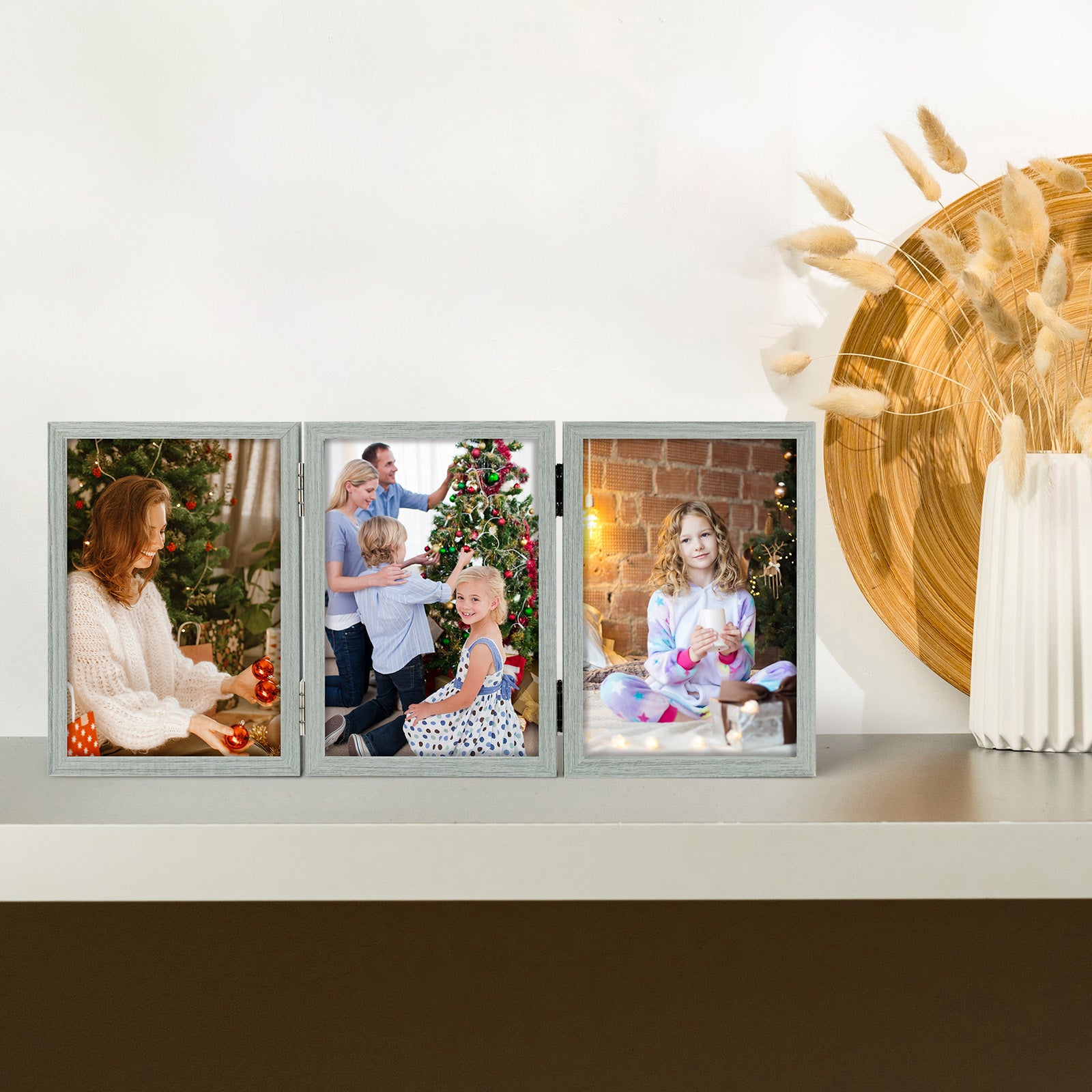 • Elegant Triple Picture Frame: Designed with a modern finish, this triple hinged frame offers a timeless and sophisticated look that complements various decor styles while providing an easy way to display multiple photos.