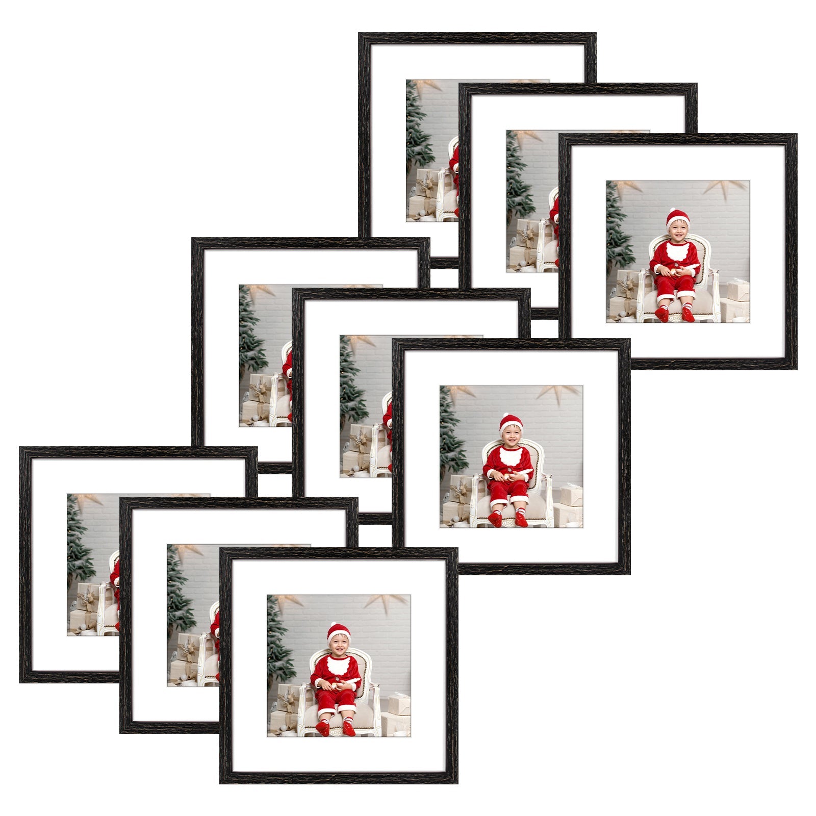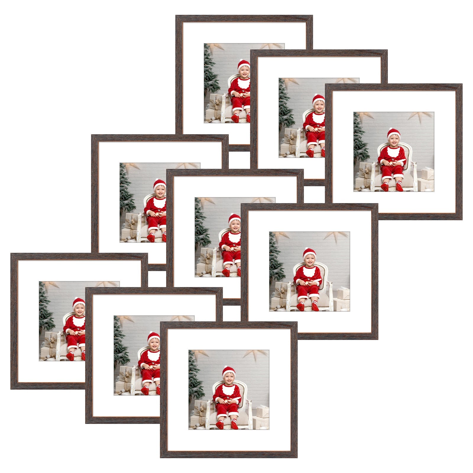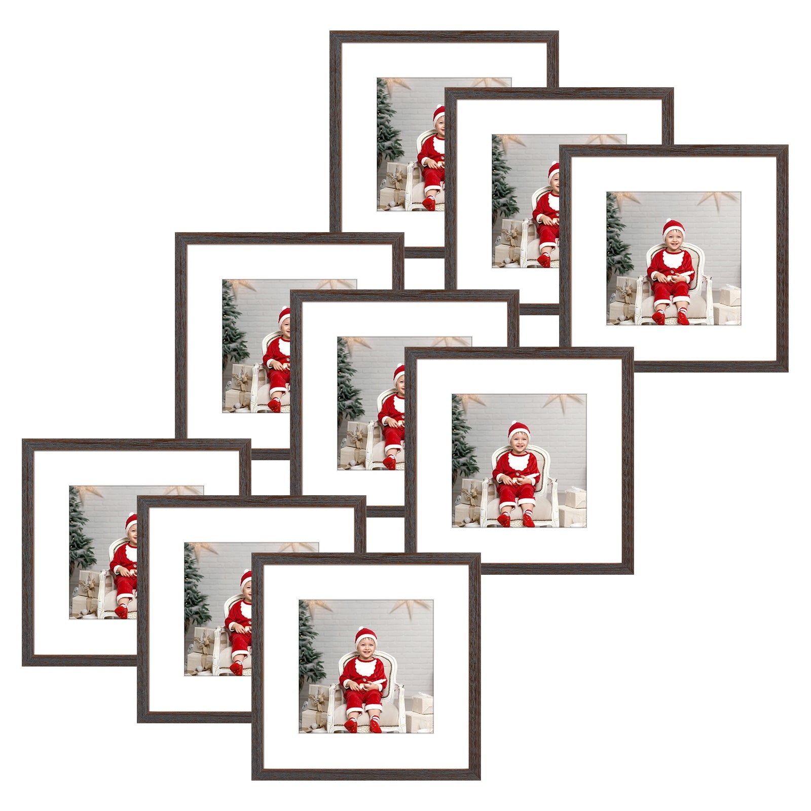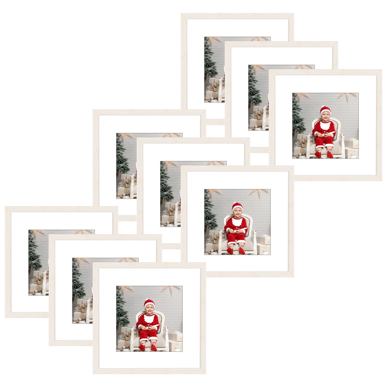 9-Pack 12x12 Wood Frames for 8x8 Pictures with White Mat and Real Glass