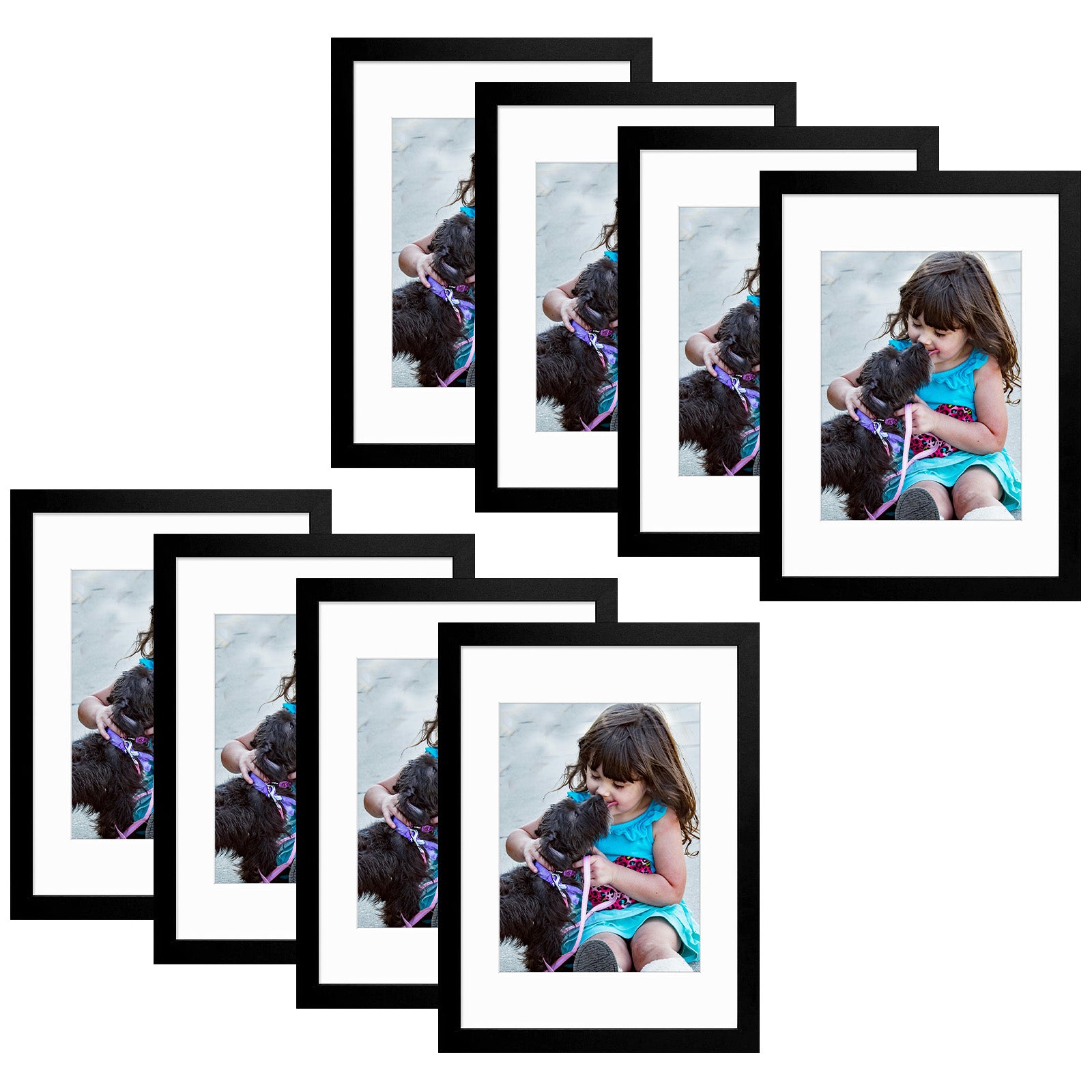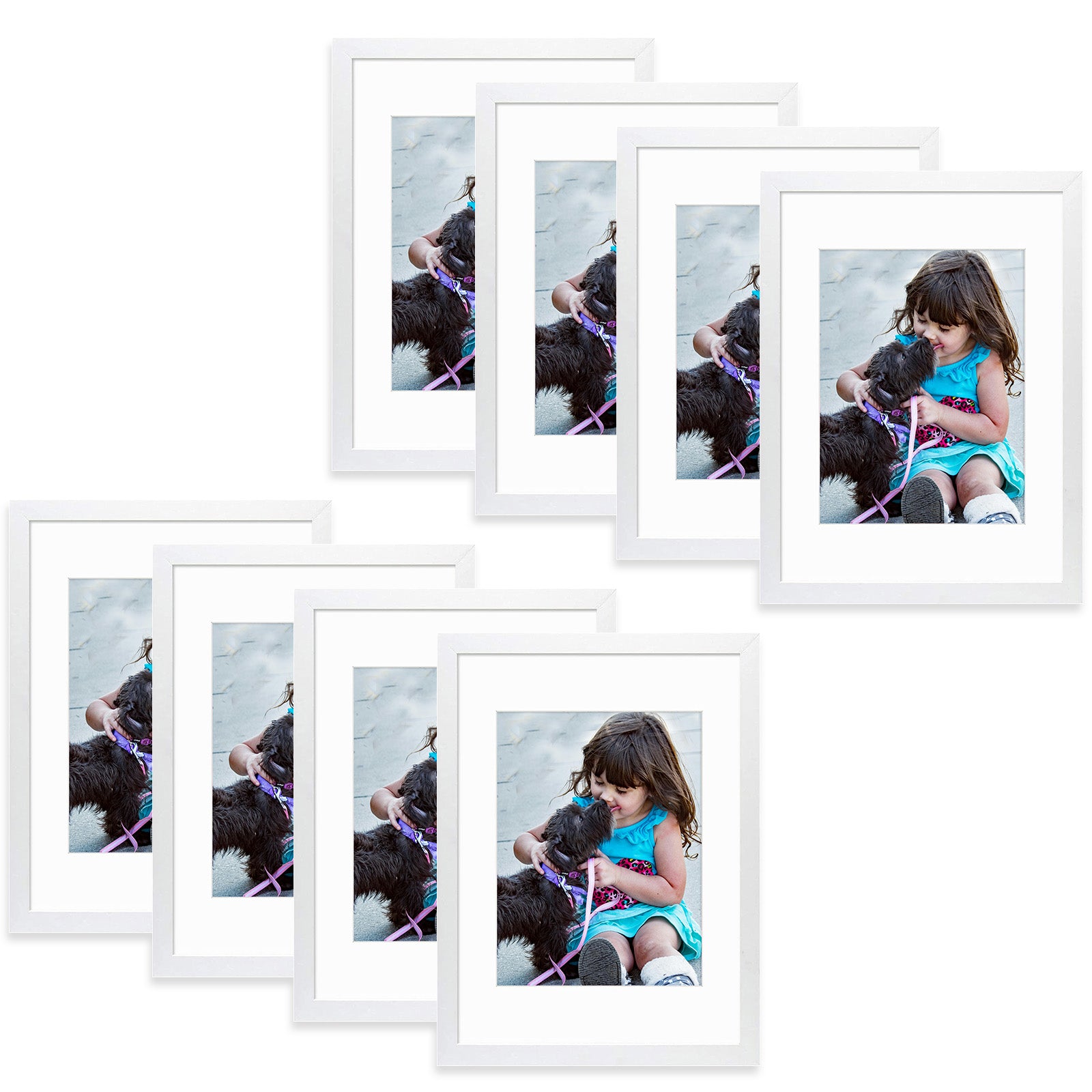 12x16 MDF Frame 0.71 Inch for 8.5x11 Picture with White Mat and Plexiglass- Pack of 8