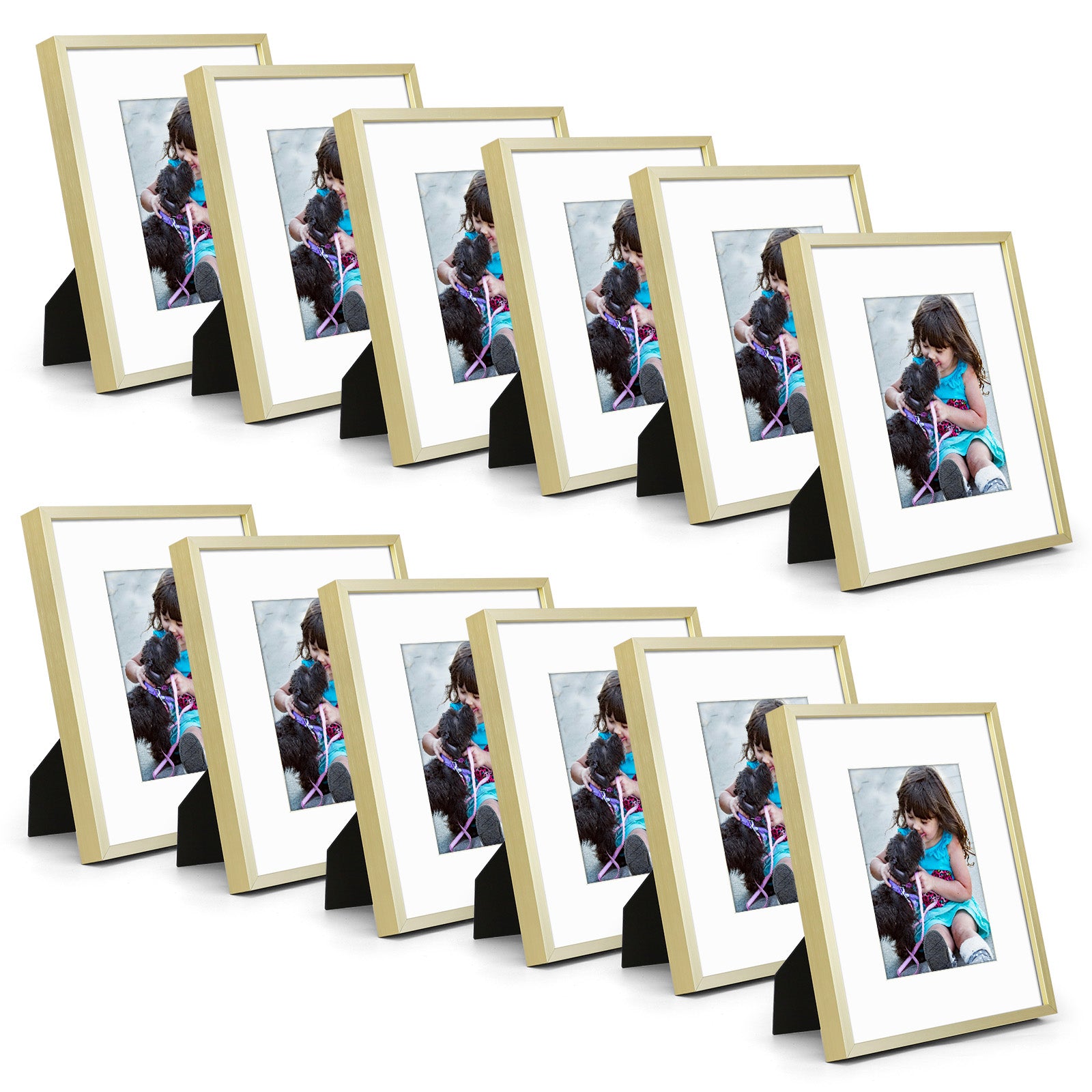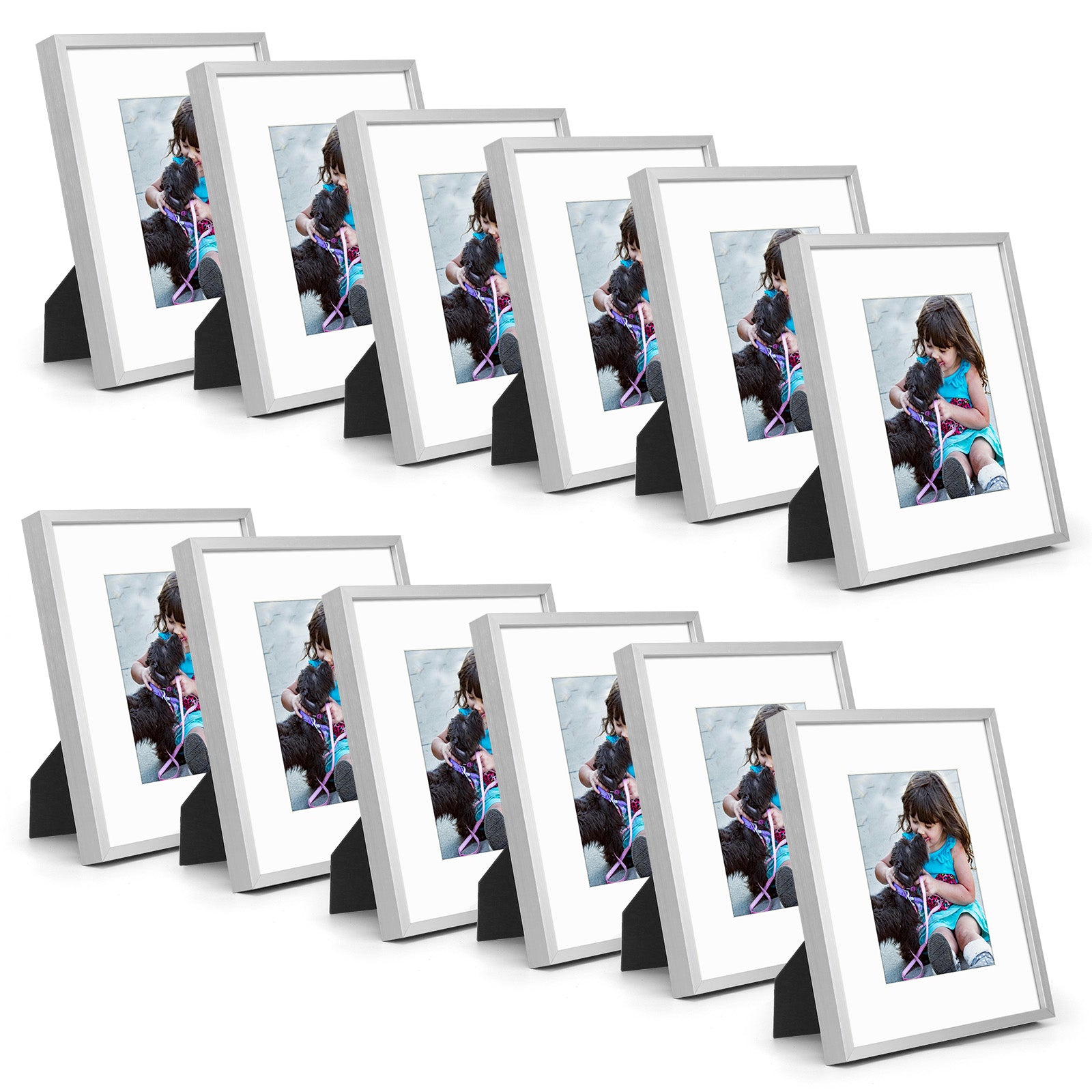 8x10 Aluminum Frame 1.02 Inch for 5x7 Picture with White Mat and Real Glass- Pack of 12