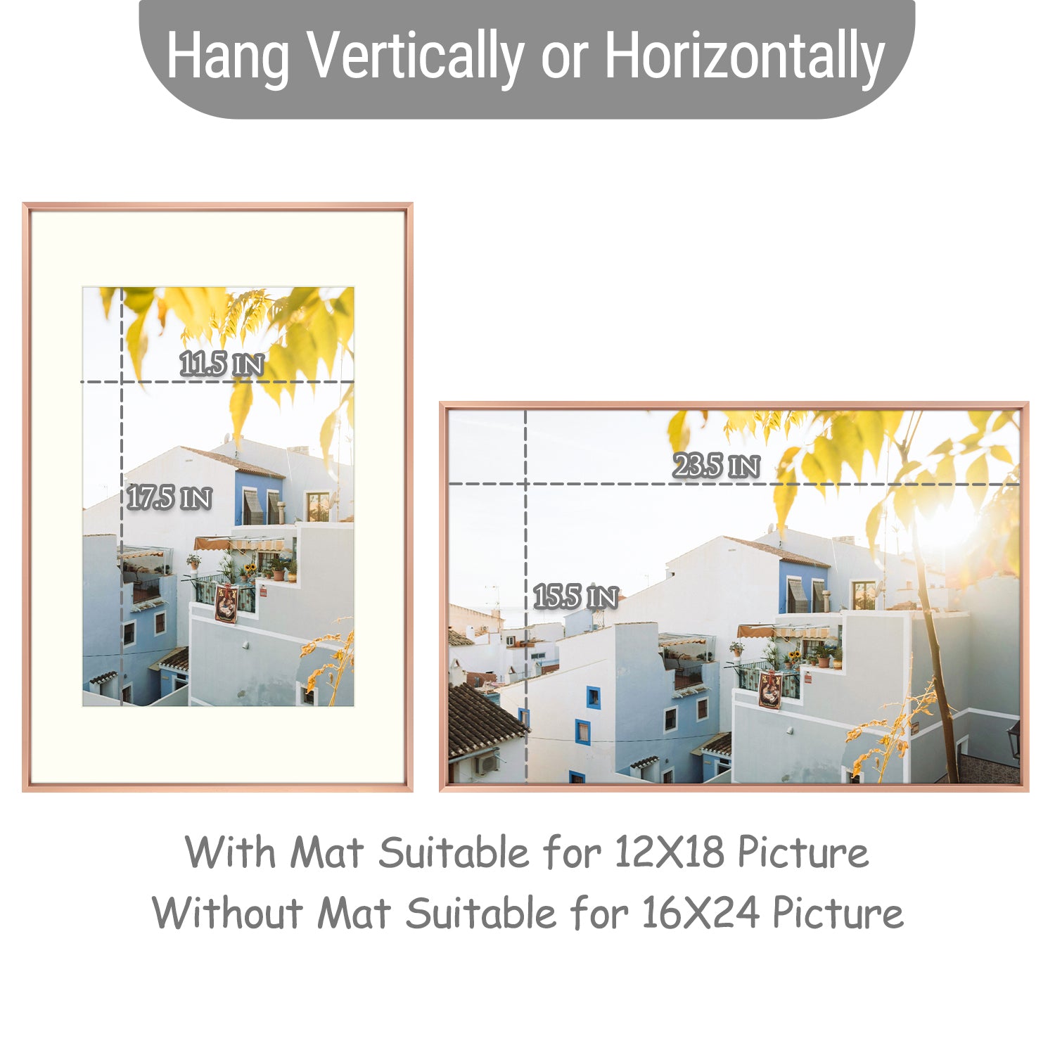 Why Choose This Frame: Choose the Golden State Art 16x24 rose gold picture frame to enhance your home or office decor. Its elegant design and versatile display options make it easy to showcase your favorite photos or artwork with or without the mat, adding a sophisticated and stylish touch to any space. With durable materials and high-quality construction, it’s a beautiful and lasting way to keep your cherished moments on display.