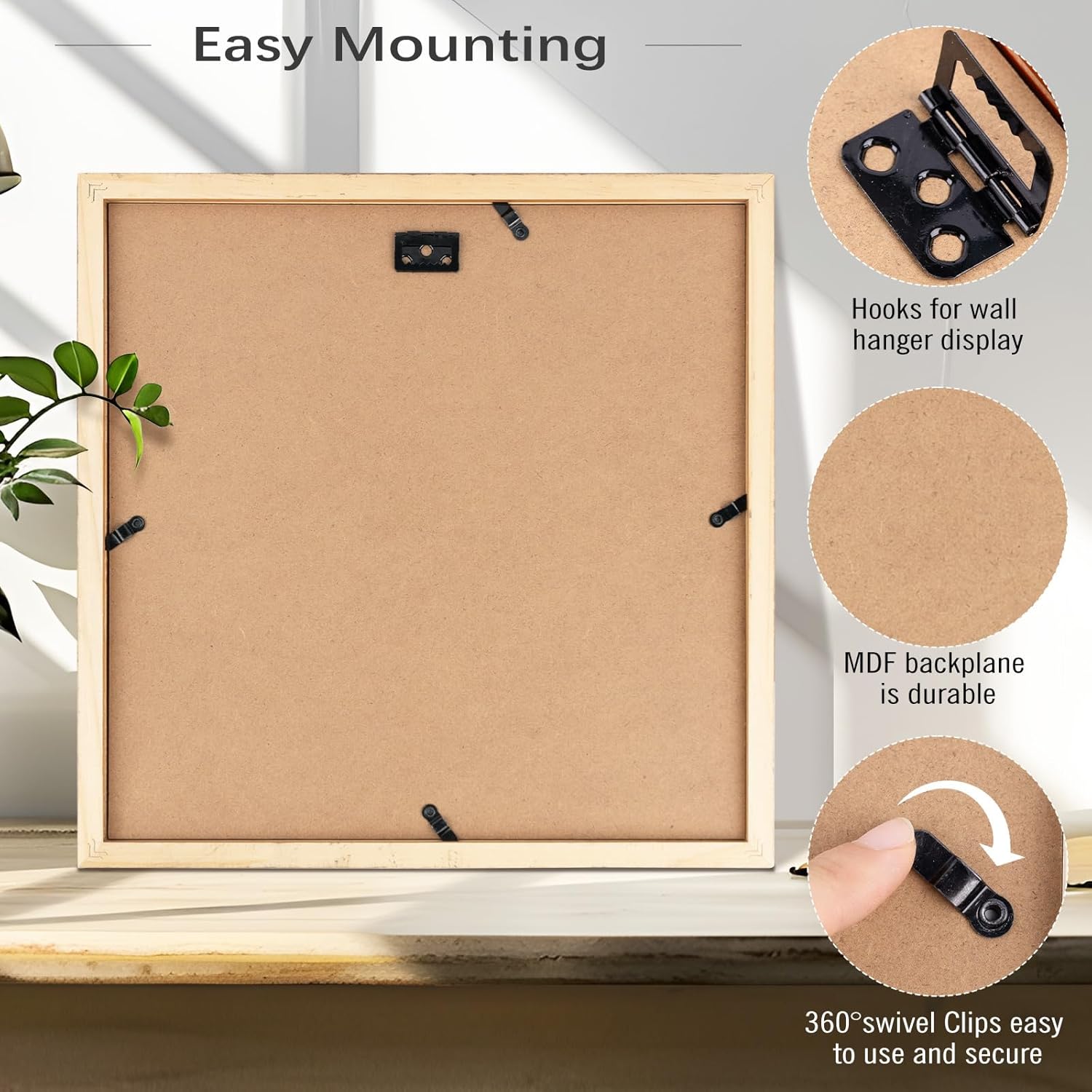 • Frame Size: Each frame measures 12x12 inches and is designed to fit 8x8 pictures with the included white mat.