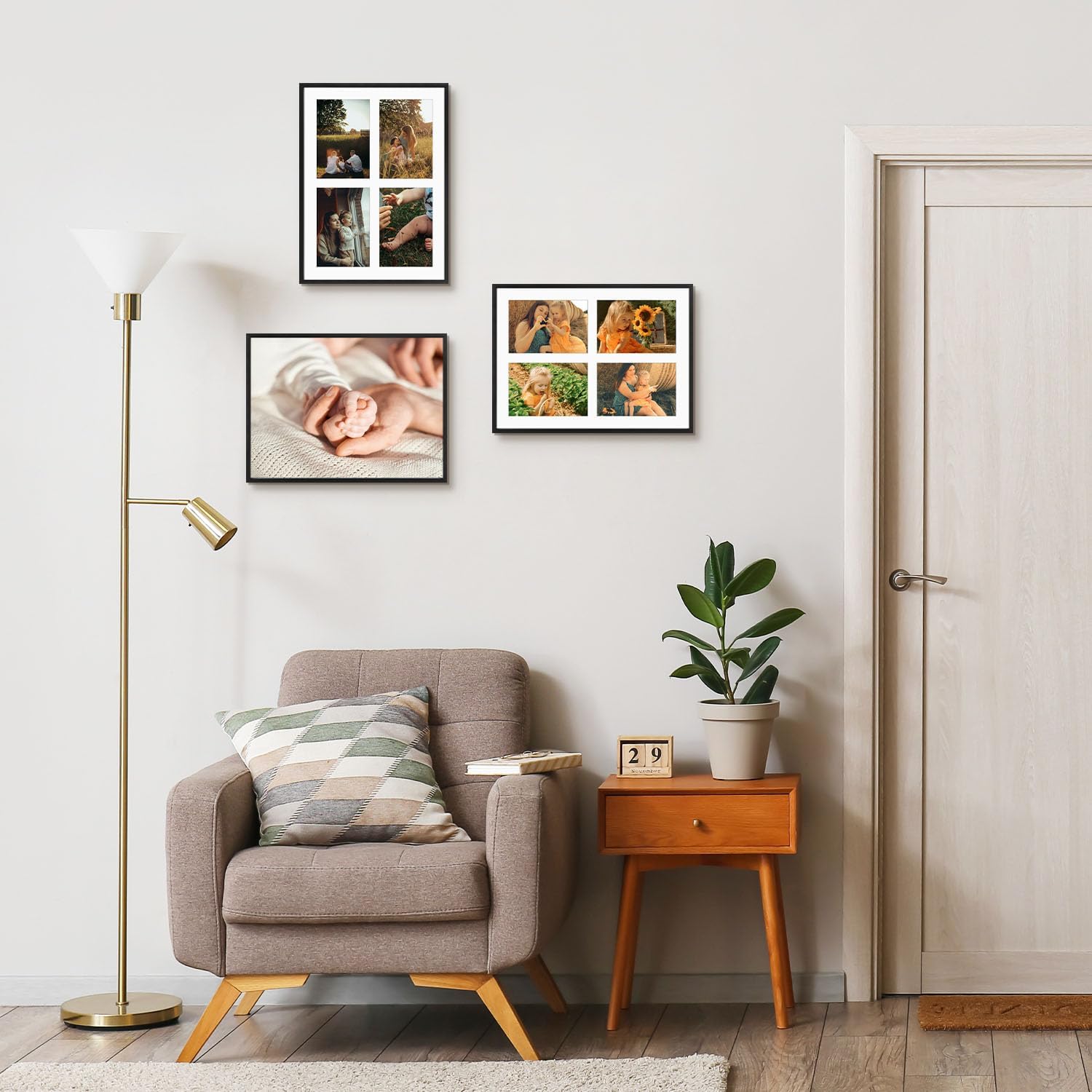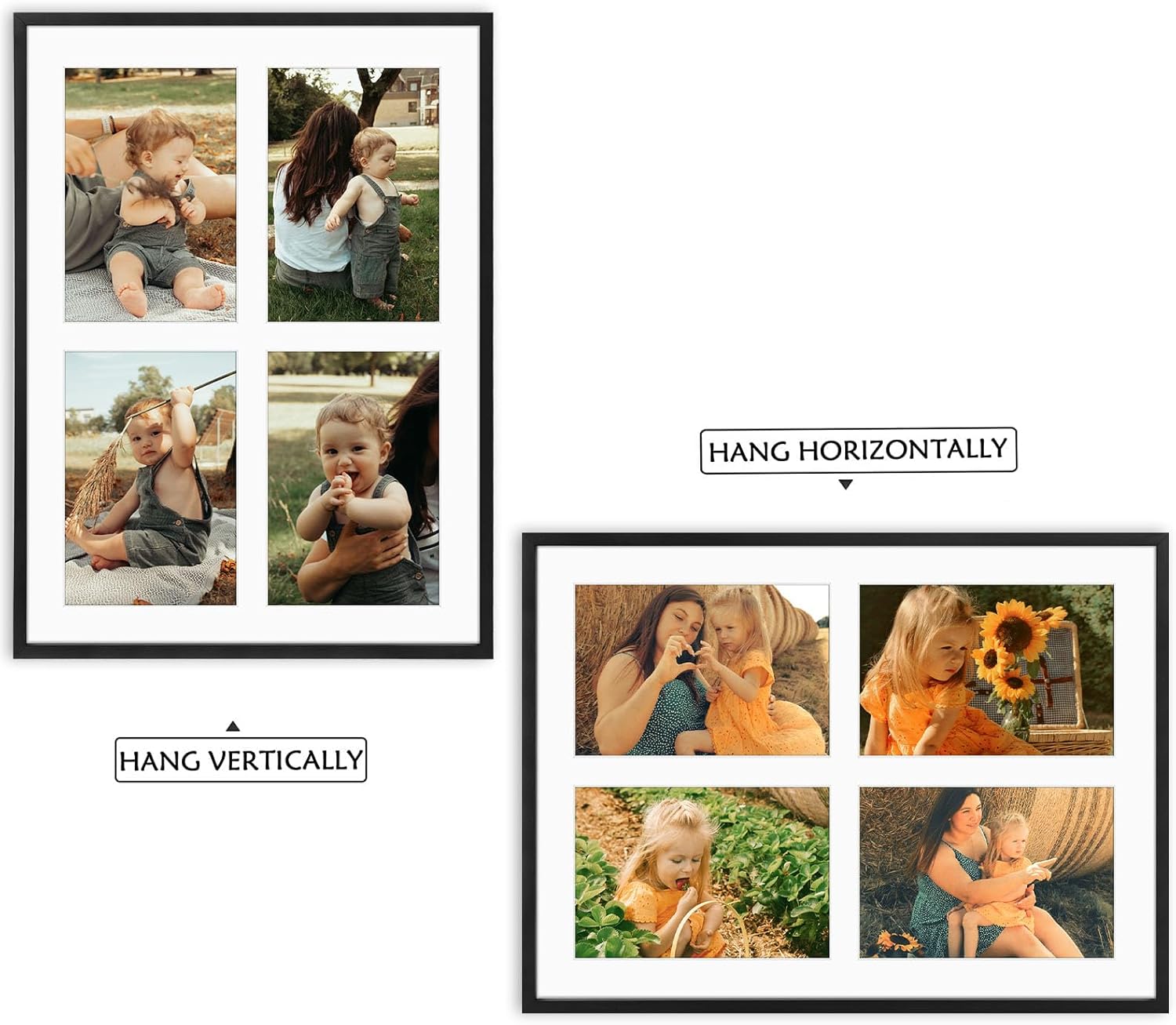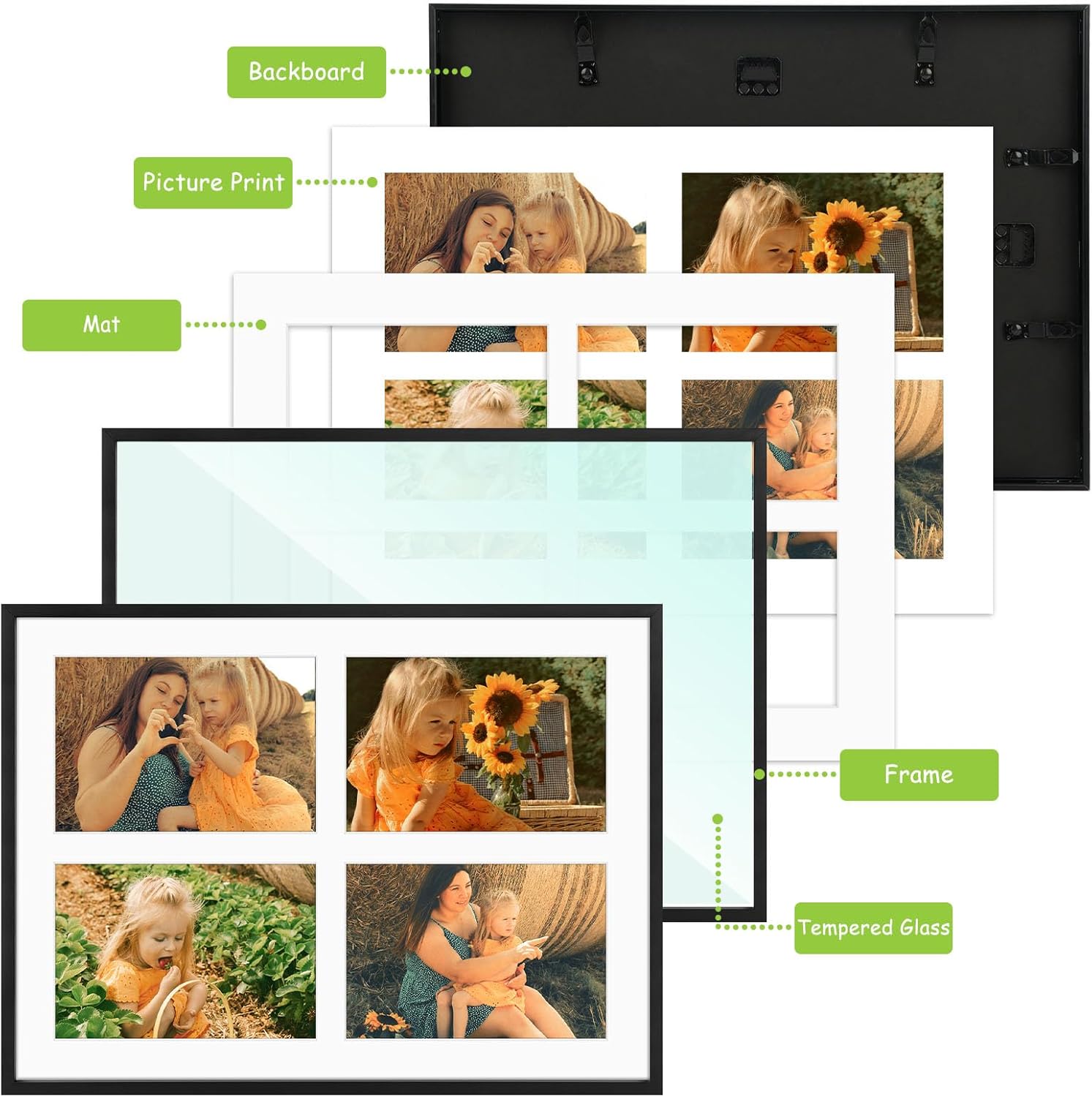 • White Mat: Adds a sophisticated touch with coordinated openings for multiple photos.