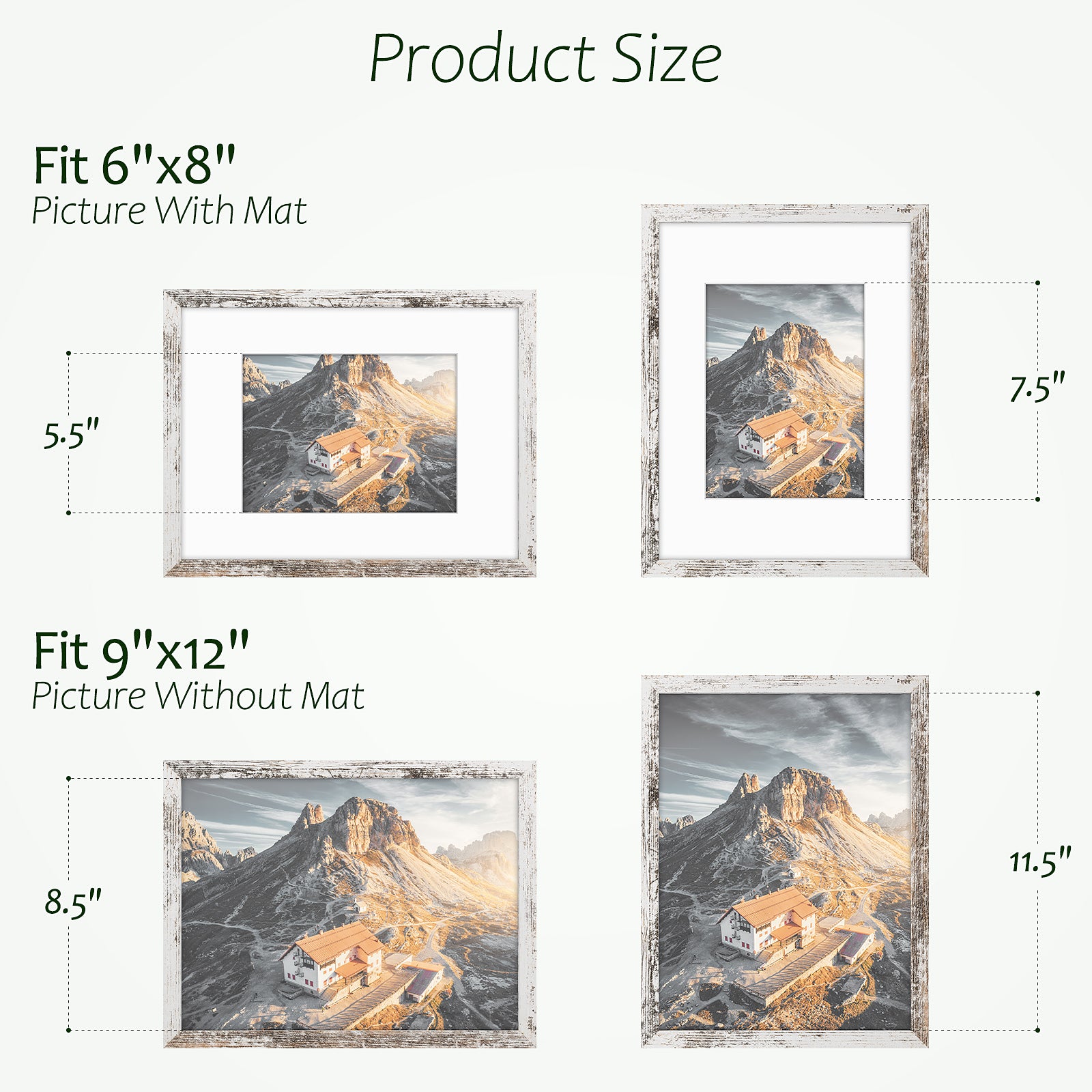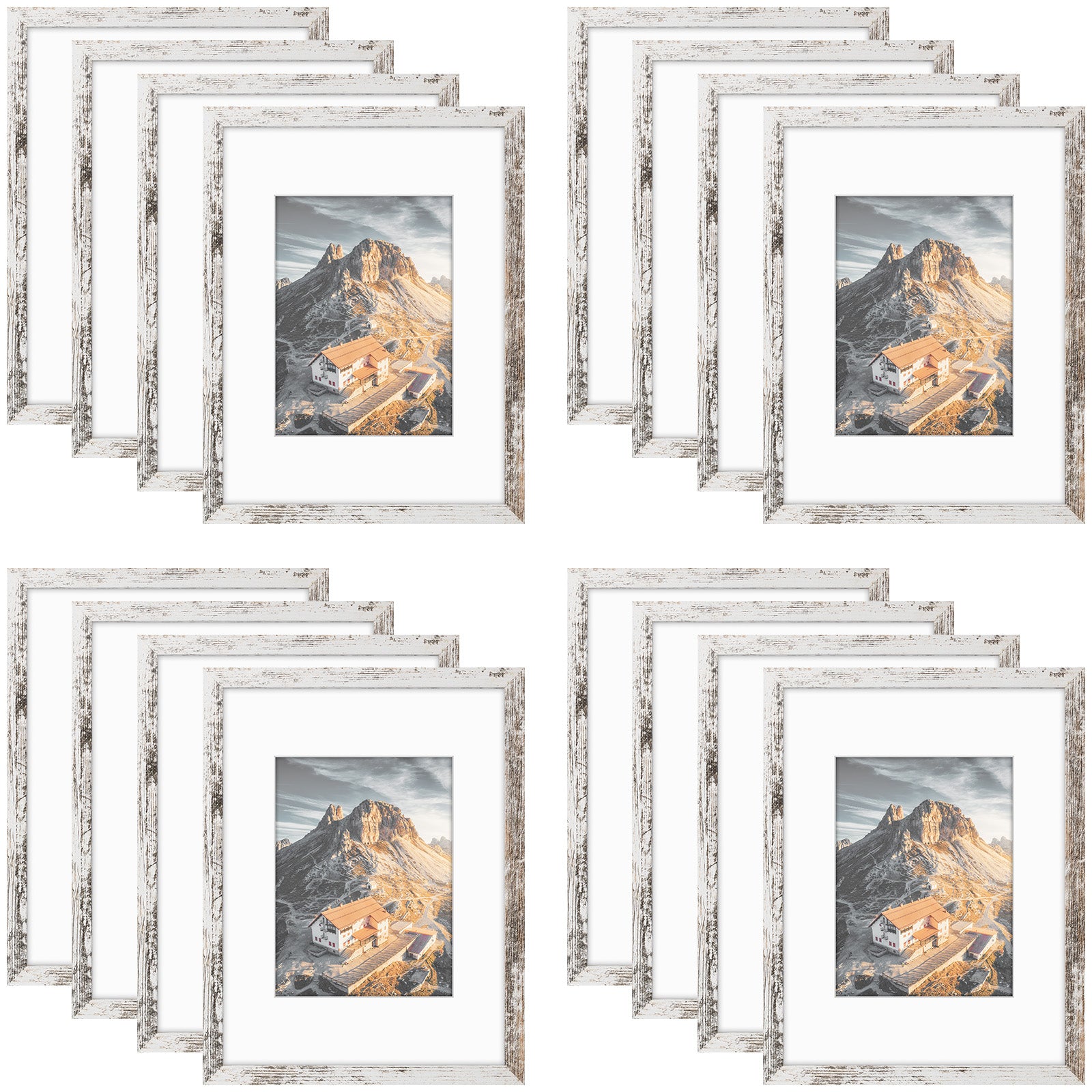 Clearance Rustic White 9x12 Picture Frames with White Mat for 6x8 Photo Pack of 16